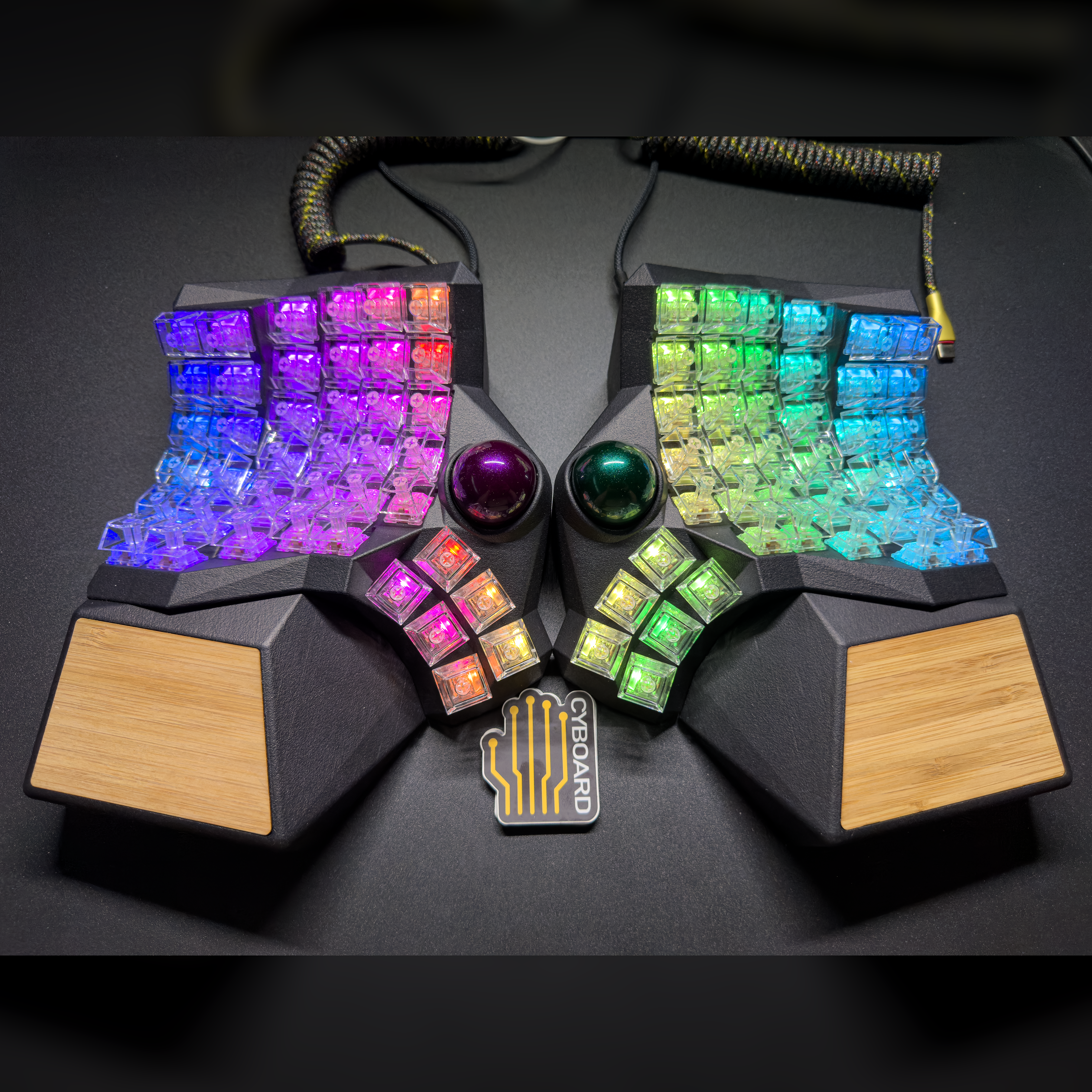 My keyboard featuring premium silent switches, a unique ergonomic shape, and data-supported custom keymap.